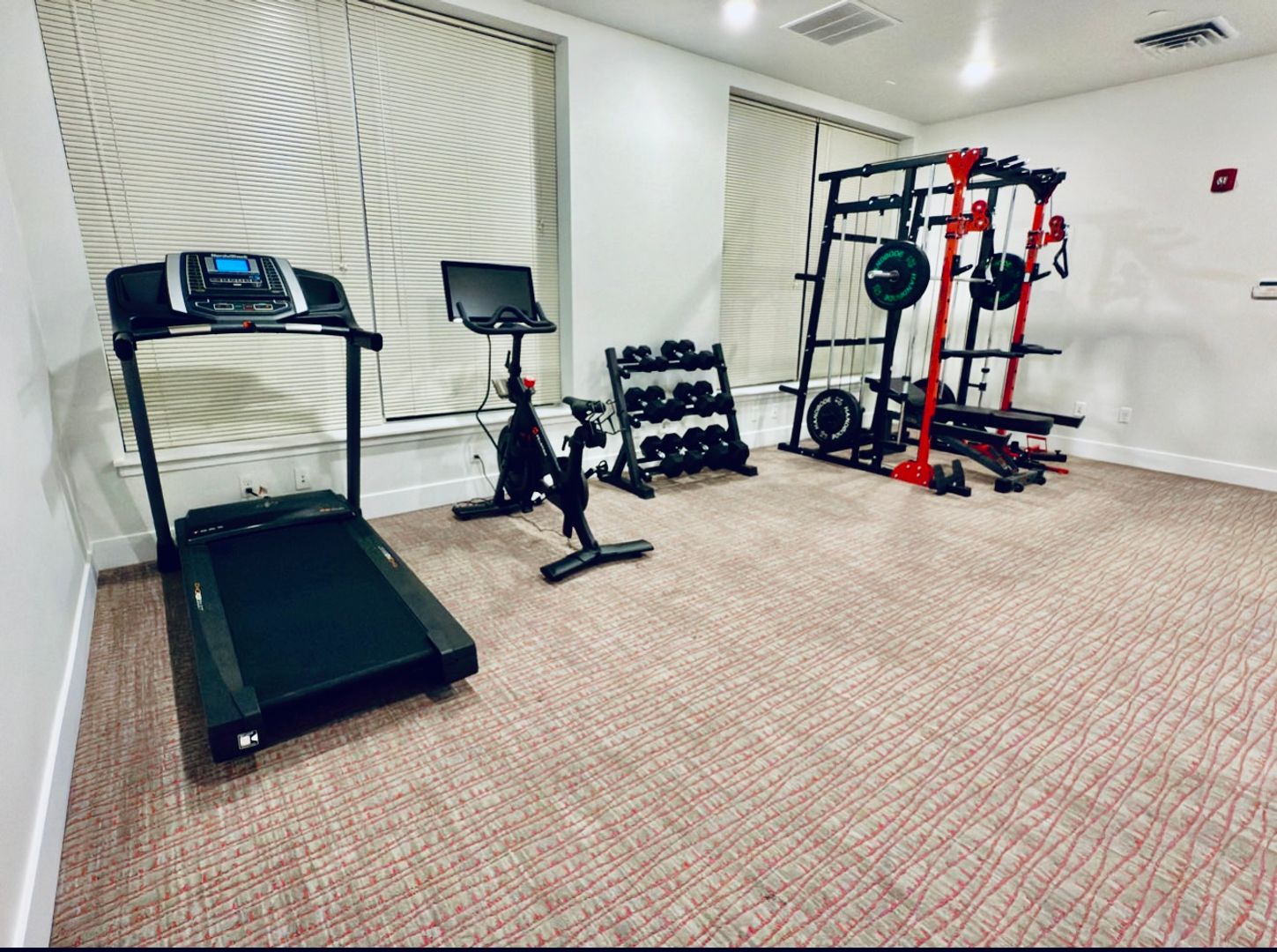 24/7 fitness center with cardio and weight training