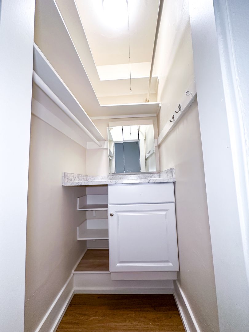 Discover classic charm and smart city living in this efficiency studio at Manchester Arms—a beautifully preserved 1920s brick building in the heart of Capitol Hill. This bright, thoughtfully designed space features original hardwood floors, tall ceilings, and large windows that flood the room with natural light. While compact, the layout offers vintage character with modern touches like crown molding and built-in storage. Please note: the unit shares a well-maintained bathroom with neighboring units.