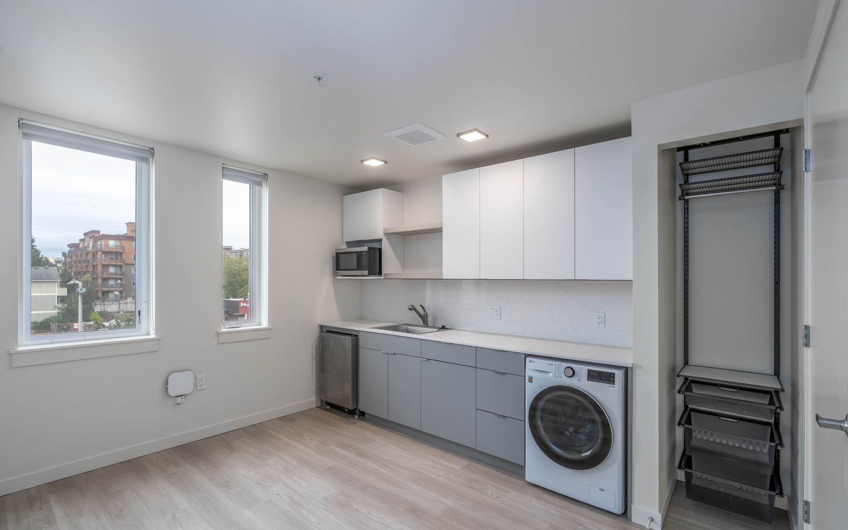 Each home features in-unit laundry, air conditioning, heating, stainless steel appliances, quartz countertops, and some even boast heated bathroom floors, high ceilings, and designer finishes like concrete or luxury vinyl plank floors.